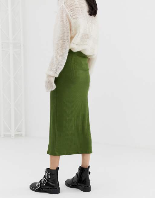 Product id: Asos design rib hot sale popper midi skirt