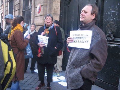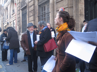 Le Professeur Albert Jacquard et Président du DAL était présent. L’Ambassade a refusé de recevoir une délégation, nous l’avons informé que nous reviendrons tant que nos camarades ne seront pas libérés, l’assassin arrêté et la justice rendue pour Issa Diarra.